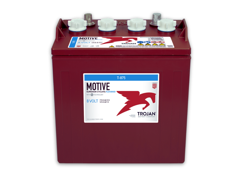 The Trojan T-875 8 V Flooded Lead-Acid Battery delivers up to 170 Ah @ 20-hr rate and 189 Ah @ 100-hr rate, giving you robust energy storage for golf carts, solar systems or backup power. Integrated Alpha Plus® Paste + T2 tech ensures longer life and less downtime. With this battery you cut energy costs, reduce maintenance and make a smart investment for Caribbean homes and businesses—reliable, cost-effective power storage you can count on.